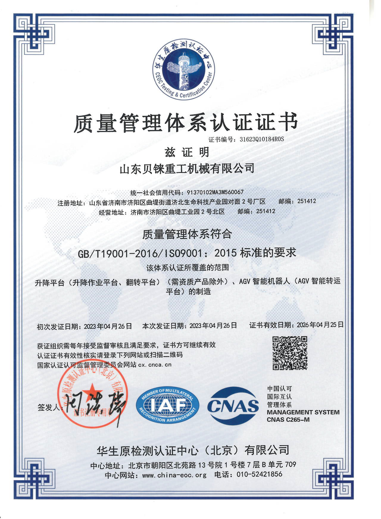山東貝錸重工機械有限公司,位于泉城濟南市,公司注冊資金6800萬元,是一家專注于液壓升降機,液壓貨梯,翻轉機械,旋轉機械,各種垂直裝配工裝等產品研發,設計,生產,銷售,安裝一體化的創新型企業,多年來全心致力于為客戶提供更高效安全的,升降裝配解決方案,憑借優良的產品獲得客戶的一直認可。